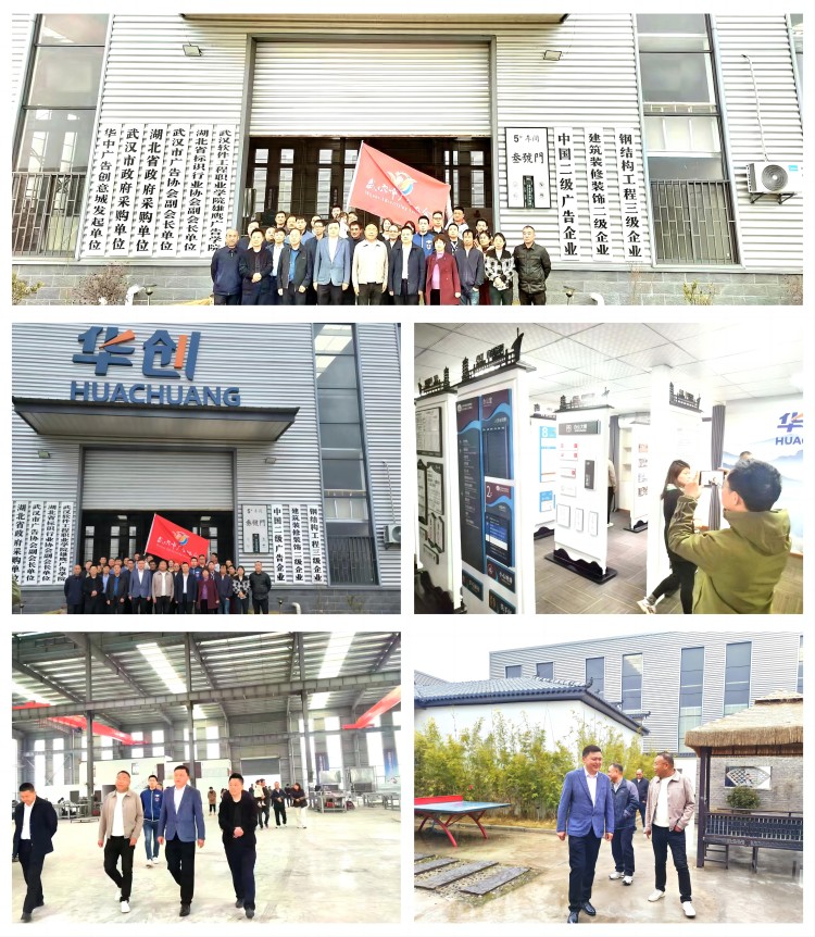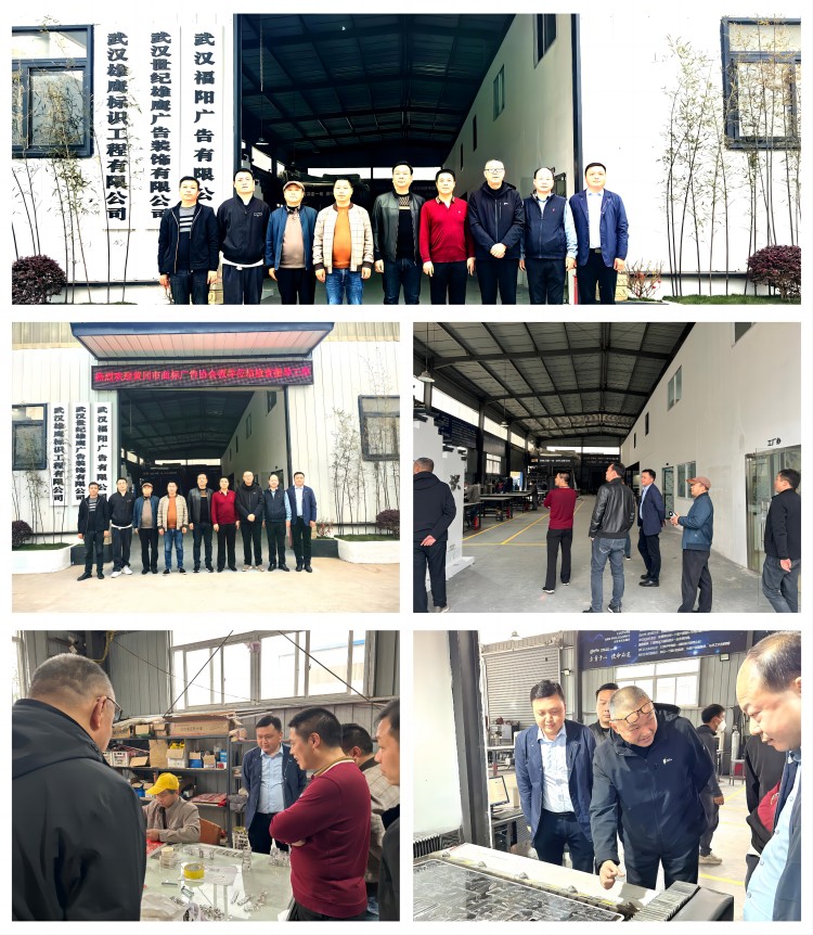 2024年3月15日,春意盎然,阳光和煦。黄冈市商标广告协会会长吴鲲、罗田县广告协会会长陈春、英山县广告协会会长汪凯等协会领导在武汉商贸职业学院现代艺术与教育学院院长涂伟与公司总经理陈波涛的陪同下,分别到武汉商贸职业学院雄鹰广告产业学院、雄鹰标识武汉工厂、华创标识产业园进行参观与交流。